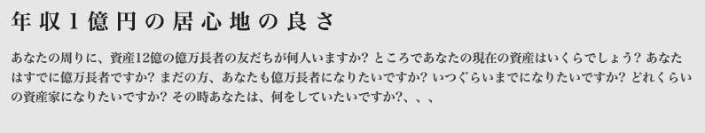 なんだか自分もなれそうな気分になってきましたか? 億万長者。